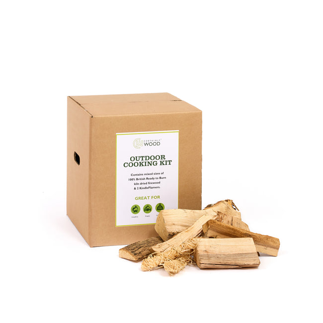 This Outdoor Cooking Kits are delivered by DPD in a small van in approximately 1-3 working days. It includes a mix of sizes of kiln dried firewood & 2 KindleFlamers. The kits are perfect for those who are passionate about being outdoors and around the fire. They are perfect for cooking on a firepit or campfires. The convenient size makes them ideal for packing on your camping holiday as they contain everything that you need.